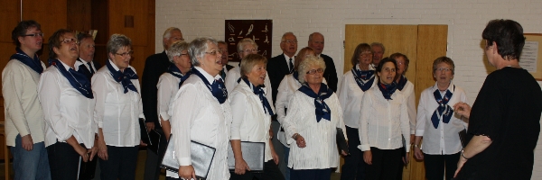 | Sigrid Schultz-Kokerbeck verstand es wieder einmal, die Zuhörerinnen und Zuhörer zu Beginn des Vortrags des gemischten Chores bei "Sing to be happy" in den Kanon einzubinden. Im Programm folgten u.a. "Gaudeamus igitur" und so bekannte Stücke wie "Ich wollt ich wär ein Huhn", "Oh when the saints" und "Somewhere over the rainbow", bevor sich der Chor mit verschiedenen Abendliedern und dem "Irischen Segen" verabschiedete und mit viel Beifall für den gelungenen Auftritt bedacht wurde. | |||||||