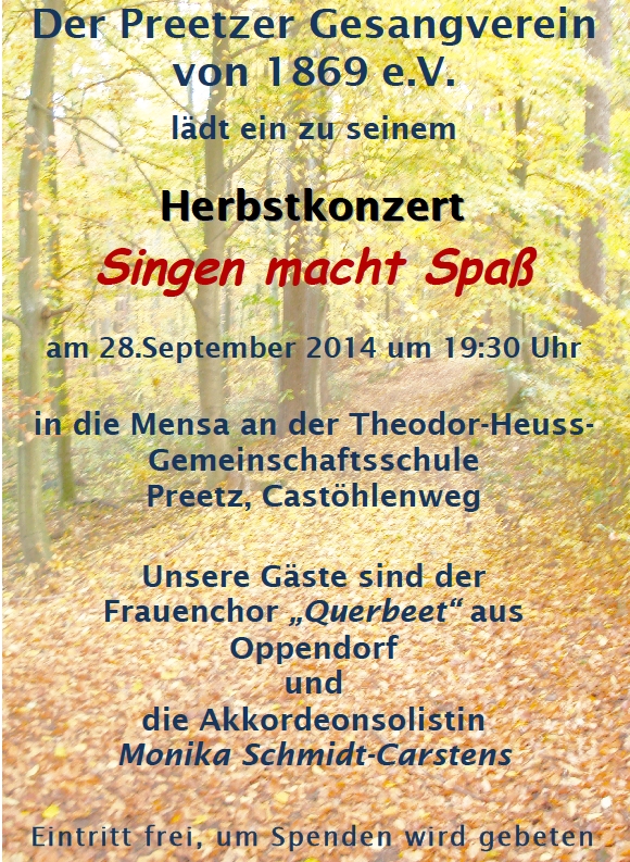 | 28.09.2014 - Unser nächstes Konzert | |||||||