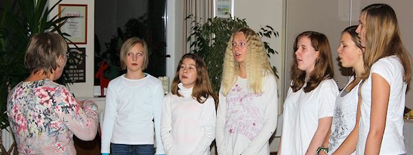 | Die Chorleiterin Kathrin Schuldt ist als Chorleiterin des Kinderchores "Schusterkinder" ausgeschieden. Unsere Jugendwartin Brigitte Waldherr hat daher zunächst die Probenarbeit übernommen. Sie begleitet den Kinderchor seit seiner Gründung, ist erfahrene Sängerin und weiß die Kinder für den Chorgesang zu begeistern. Sie hofft, dass sich weitere Kinder zu den Proben (jeweils am Donnerstag ab 17.00 Uhr in der Wilhelminenschule) einfinden, um kindgerechte Lieder und Chorsätze einzuüben. Alle Jungen und Mädchen werden dabei feststellen: "Singen macht Freude"! | |||||||