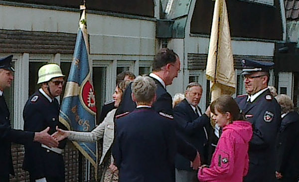 | Mit einem ökumenischen Gottesdienst wurde das diesjährige Preetzer Schusterfest in der Stadtkirche eröffnet. Dazu waren - wie in den Vorjahren - Fahnenabordnungen der Preetzer Vereine und Verbände eingeladen. So nahm auch der Preetzer Gesangverein als einer der ältesten Preetzer Vereine mit einigen Sängerinnen und Sängern an der Veranstaltung teil und zeigte wieder einmal die Vereinsfahne in der Öffentlichkeit. Die Fahnenabordnungen wurden auch von Bürgermeister Björn Demmin und Ehefrau per Handschlag willkommen geheißen. |