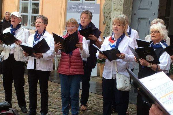 | Der Sängerbund Schleswig-Holstein hatte zur Teilnahme am Chorfest im Rahmen der Landesgartenschau aufgerufen und unser gemischte Chor reiste am Sonntag in Eutin an, um im Innenhof es Schlosses seinen Beitrag zu der Großveranstaltung zu leisten. Von 11.00 Uhr bis 17.00 Uhr erklang an den verschiedenen Auftrittsorten Chormusik, die wohl für jeden Geschmack etwas Passendes anbieten konnte. | ||||